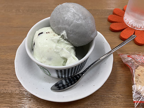 デザートはゑり章のジェラート(黒ゴマとチョコミント)。