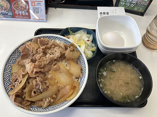 無事に交換してもらったあと、汐見町まで来たらやっぱり吉野家ということで、40代の頃のランチを再現して食べてきた! 山本ロースの半額ですんだニャ〜