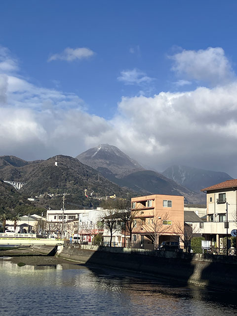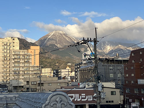 寒波もきのうがピークだったようで、鶴見岳がさすがに白い〜