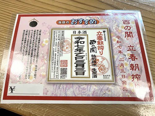 西の関 立春朝搾りを飲みながらの握りは最高でした!