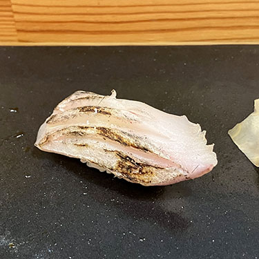 本日のおまかせ10貫はヒラメ、コウイカ、赤貝、サバ、アジ、中トロ、カマス、マナガツオ、クルマエビ、ウニ。