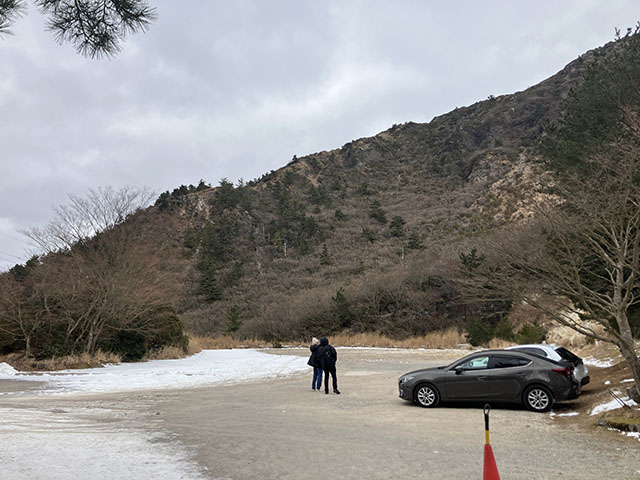 往きは明礬経由の北回りではなく、城島高原経由の南回りで。やはり山の方は雪が残っている。