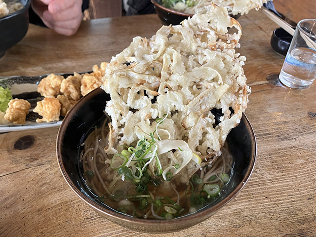 ごぼう天うどんととり天をいただく。(写真はおいらだけごぼう天「そば」。)味もビジュアルも満点!