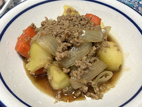 今夜は佐伯のサバとヒラメのお刺身&日出ポークのキーマ肉ジャガ!
