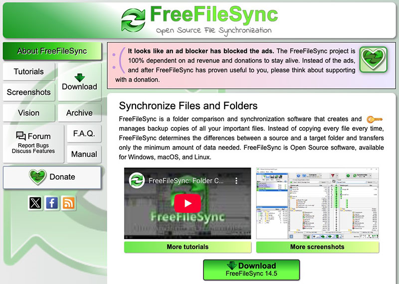 開いたページの「Download FreeFileSync 14.xx macOS」をクリックし、普通にインストール。