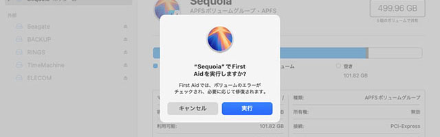 修復したいボリュームを選択し、「First Aid」をクリック。