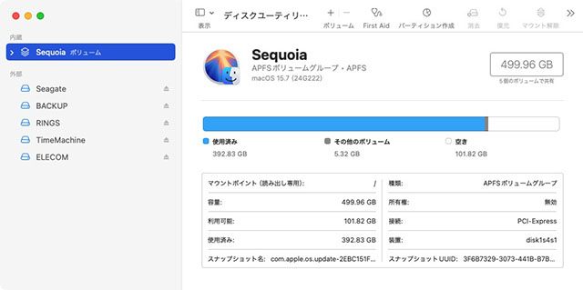 ディスクユーティリティ 22.7
