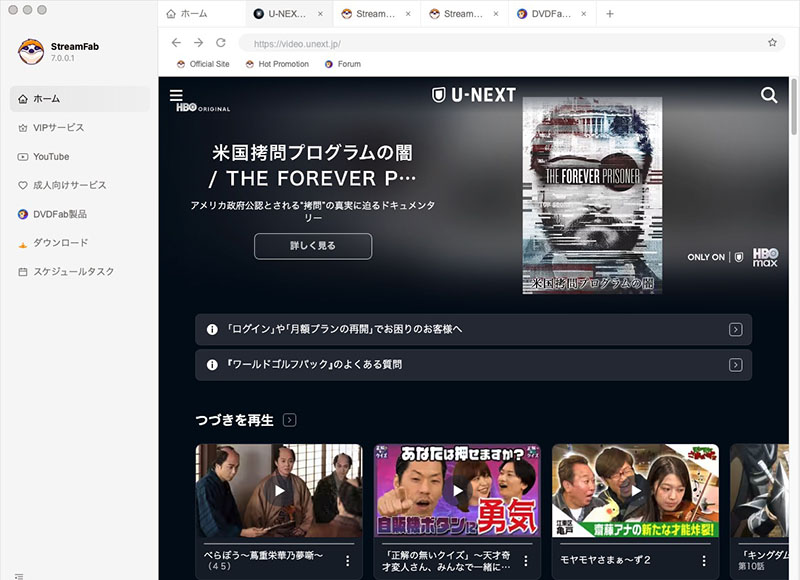 そんなわけで推奨はしないが説明だけしておくと、StreamFabシリーズの機能が全て含まれたオールインワンパックの無期限盤は非常に高価だが、たとえば U-NEXT だけダウンロードできれば十分な人は単品で「StreamFab U-NEXT ダウンローダー for Mac」を購入すればよい。おいらはセールで6,000円で買った。