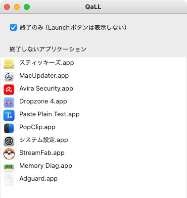 「終了のみ(Launch ボタンは表示しない)」のチェックをはずすと、アプリをまとめて終了したあと下のようなボタンがデスクトップに現われる。
