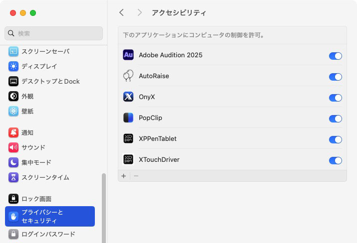 インストール後「システム設定>プライバシーとセキュリティ>アクセスビリティ」で、AutoRaise にチェック。