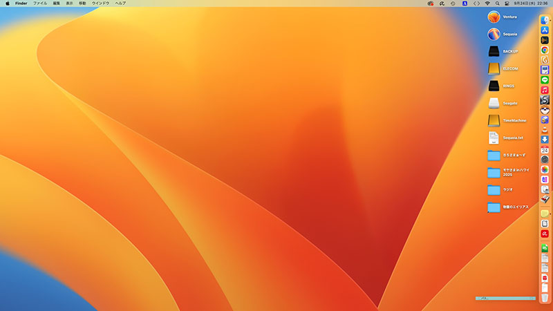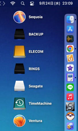 内蔵SSDに Sequoia、外部SSDに Ventura をインストールしています。