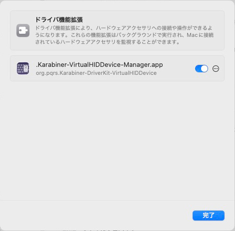 インストール後、システム設定でドライバ機能拡張を有効にする。